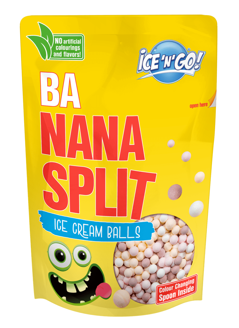 The pleasant aroma of fresh strawberries, soft vanilla, sweet bananas and cocoa enhances the unique taste and color of the creamy banana split ICE’N’GO!