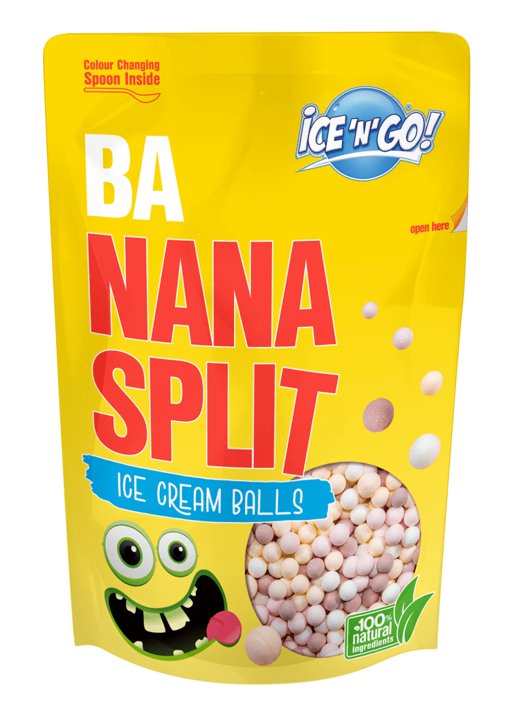 The pleasant aroma of fresh strawberries, soft vanilla, sweet bananas and cocoa enhances the unique taste and color of the creamy banana split ICE’N’GO!